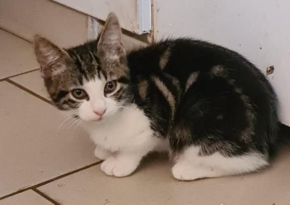 Chaton mâle, type Européen, coloris tigré et blanc. Né le 19 juillet 2021.