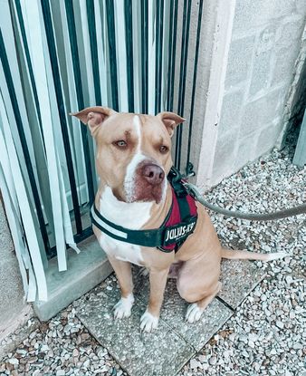 Tyson est un grosse boule d'amour (32kg). Il est doux et affectueux avec tout le monde surtout avec les enfants.