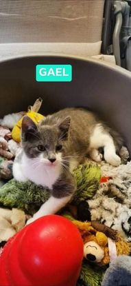 Petit mâle beau parleur, très curieux, très câlin. Gael est un chaton très proche de l’Homme, il accourt demander des câlins le matin au réveil et quand on rentre du travail.