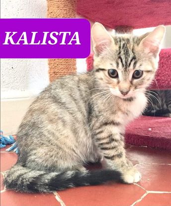 KALISTA est très joueuse c’est la moins peureuse. C’est une petite aventurière elles adore partir en exploration dans la maison. Mais ce qu’elle aime le plus c’est manger, c’est la première à la gamelle.