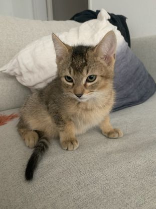 Safari est resté longtemps le plus craintif des 3 petits et il s'est révélé d'un seul coup un vrai nounours toujours prêt à faire des câlins , c'est un chaton qui ronronne beaucoup ..