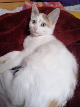 Je m'appelle Tokio, petite femelle née mi août , je suis blanche avec une queue multicolore et des yeux or magnifiques. j'habite chez maryline à Pont St esprit avec mon frère et ma sœur. Si tu cherches un chaton pot de colle, une boîte à ronron vient me voir et si tu veux une démonstration contact ma maman d'accueil au 06 20 67 23 53 Je suis adoptable sous contrat associatif et une participation de 100 euros et demandée pour le remboursement de mes frais vétérinaire. (déparasitage, identification et certificat de bonne santé.)