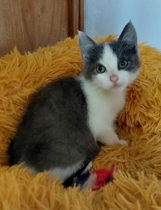 Né le 2/09, Sirtaki attend ses futurs adoptants en famille d’accueil, en compagnie d’autres chatons