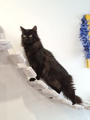 Naïs est une femelle qui vient d'un sauvetage. En effet, la propriétaire est décédée et son fils nous a demandé de les accueillir dans notre association. Elle a un poil demi long tout à fait magnifique avec des reflets brun.
