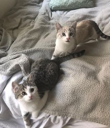 Suzy (tigrée et blanche) et Sybelle (typée siamoise)