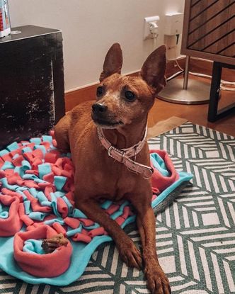 Habby est une petite pinsher qui a été récupérée après le décès de sa maîtresse. Très craintive aux premiers abords, elle se détend très facilement après un peu de temps, des balades et des friandises. Elle est très gourmande, pleine de vie et débordante d'amour ! C'est un vrai pot de colle qui sera ravie de passer ses soirées à vos cotés, lovée dans le canapé. Mais attention elle a besoin de beaucoup de balades car elle déborde d'énergie !