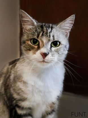 Persée est une minette qui a été trouvée dehors et mise à l'abri par une bénévole, le temps qu'une place se libère