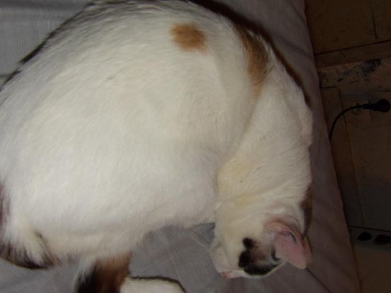 C'est une jeune chat sympa, affectueux, calme et gourmand.