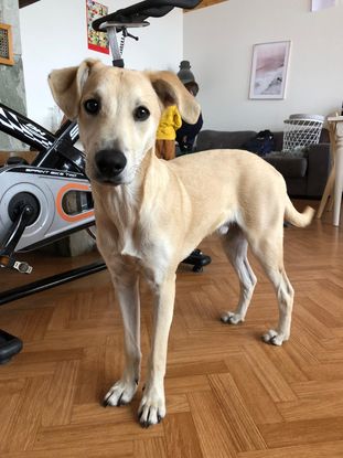 "SHADOW est un jeune chien calme, qui vient demander des câlins et qui supporte très bien les absences (aucune destruction). Ce qu'il préfère, ce sont les peluches et les kaplas des enfants pour faire ses dents !