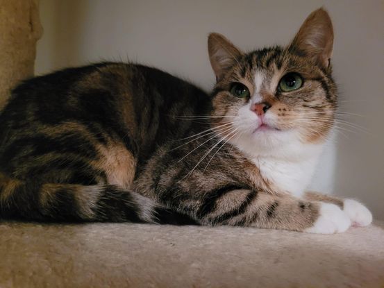Caractère : RAJA est une petite chatonne bien dans ses coussinets. Elle est curieuse, douce et joueuse. Néanmoins elle reste craintive et a besoin d’être en confiance pour se révéler.