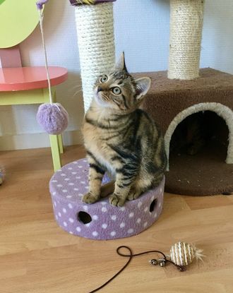 Joséphine n'a que 3 mois mais elle n'a pas peur des chats adultes, elle est peut-être petite mais est toute aussi forte qu'eux et puis regardez comme elle est belle avec son poil tigré !