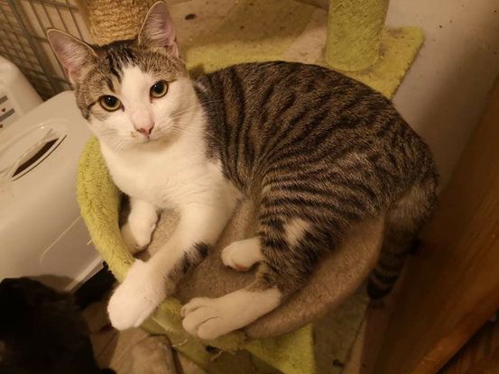 Jude est un adorable chaton très affectueux, câlin et joueur. Il est habillé d'un joli pelage blanc et tigré foncé. Il est sociable avec les autres chats.