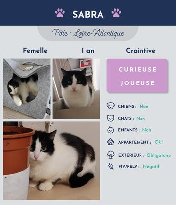 Sinon je suis plutôt facile à vivre car je ne fais pas de bêtise, je suis propre et miaule pratiquement jamais. Par contre j’ai absolument besoin d’un accès à l’extérieur sécurisé, j’adore mettre mon museau dans le vent et je suis super curieuse (j’aime sentir de nouvelles odeurs, découvrir de nouveaux trucs).