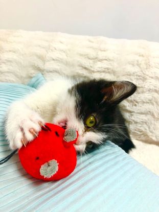 Je suis méga sociable, je m'entends avec les chiens, les chats, les lapins et les enfants. Il faudra tout de même être vigilant avec les enfants car n'ayant pas eu ma maman pour me sevrer, je n'ai pas appris à ne pas mordre et être doux lorsque je joue.