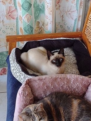 Ce sera un grand chat, plutôt calme, pas bavard comme peuvent l'être les siamois, il vit actuellement avec d'autres chats et un chien.
