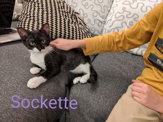 Pour l'instant, Sockette semble plus indépendante que Socky cependant elle aime être près de ses humains. Les deux sont très joueuses et Socky aime les caresses.