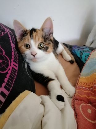Sushi un chaton très câlin et proche de l'Homme. Il apprécie les caresses, se laisse manipuler mais a encore peur d'être pris dans les bras. C'est un petit aventurier très curieux et espiègle !