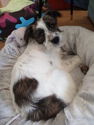 Arrivée le 05/02/2022 en France en famille d'accueil. Sueli se montre déjà joyeuse, appréciant les câlins, n'a pas peur des hommes ni de la chienne de la famille d'accueil, indifférente aux chats. C'est encore un chiot qui ne demande qu'à apprendre.