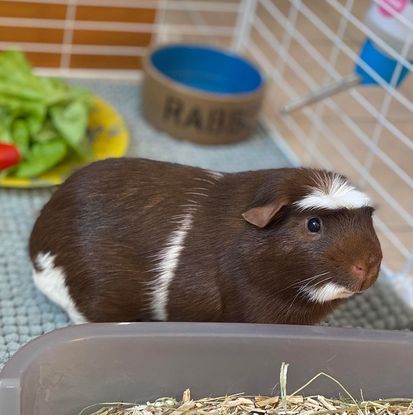 Muffin est sociable, il a son petit caractère mais ça le rend très attachant! Il accepte facilement les caresses surtout s’il y a des légumes à côté... il est curieux et vif.