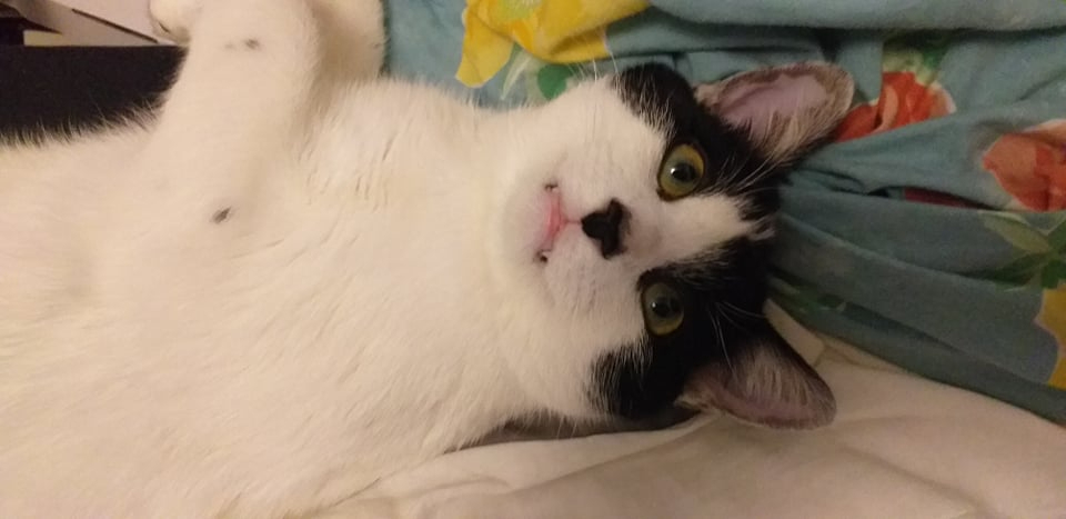 Notre beau bicolorus a été mis à l'abri suite à une errance... Après de nombreuses recherches de propriétaires, notre amie des animaux n'a pu se résoudre à le remettre dehors et nous a contacté.. et pour cause !! Timide ? Snoopy ? Il n'en est rien !