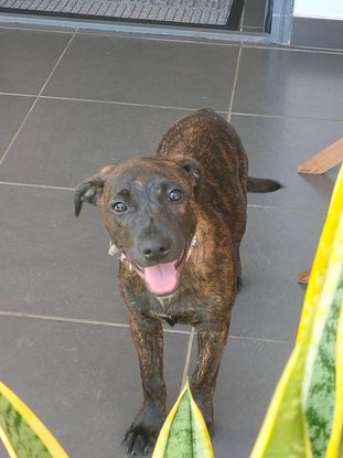 Parmi nos recrues du mois de janvier 2022, nous avons trois sœurs bringées : on vous présente tout d’abord SASKIA ! Sa naissance est estimée au 15/11/2021 et elle devrait peser une douzaine de kilos à l’âge adulte. Nous ne connaissons pas ses parents, ceci n’est donc qu’une estimation.