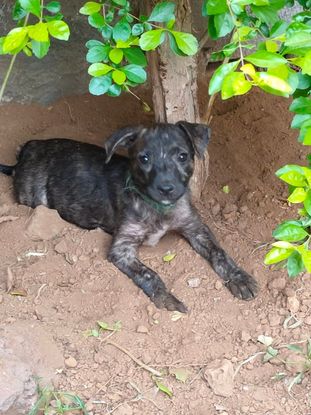 Parmi nos recrues du mois de janvier 2022, nous avons trois sœurs bringées : on vous présente la deuxième, SANDY ! Sa naissance est estimée au 27/09/2021 et elle devrait peser une douzaine de kilos à l’âge adulte. Nous ne connaissons pas ses parents, ceci n’est donc qu’une estimation.