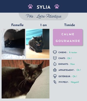 Mon nom est Sylia mais ma famille d'accueil m'appelle Croustille. Je suis une minette toute noire avec de beaux yeux verts.