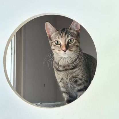 SCANIA est une jeune chatonne au pelage tigré. C'est la soeur de SASKIA.
