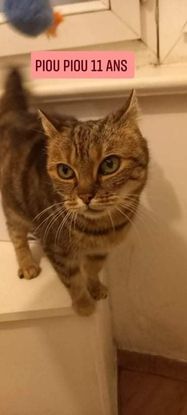 PIOUPIOU 11 ANS Timide au premier abord, ça devient une vraie boule d'amour et machine à ronron une fois qu'elle prend confiance. Elle adore les caresses et se coller à vos jambes.