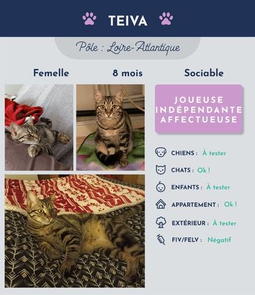 Moi c’est Teiva ! Je suis une petite chatte de 8 mois pleine de vie.