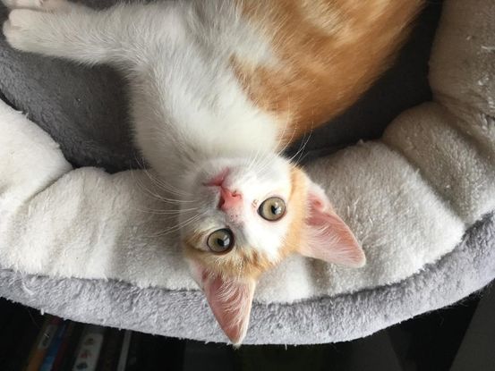 Trouvée réfugiée dans un moteur de voiture suite à un abandon (carton avec eau et croquettes à proximité) citrouille est une jolie rouquine de bientôt 3 mois très proche de l’homme, câline et à l’aise avec les chats. Ce petit pot de colle ambulant ne rate jamais une occasion de se faire gratter les fesses ou de faire une petite sieste sur nos genoux
