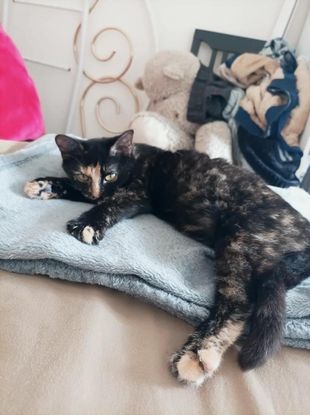Aujourd'hui, elle va beaucoup mieux, elle mange très bien et elle est très dynamique. Elle est très joueuse mais aussi très câline.
