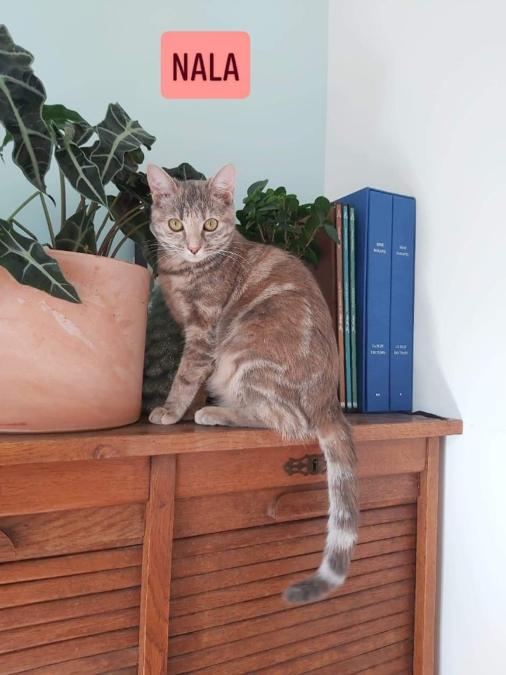 Nala est une minette très énergique et très joueuse. Il lui faudra un espace extérieur pour qu'elle s'épanouisse pleinement. Un peu timide au début, Nala aura besoin de patience pour s'habituer à son nouvel environnement. Mais une fois en confiance, elle deviendra très câline et affectueuse.
