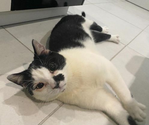 J’adore jouer, courir partout, entre deux parties avec mes copains chats, je fais dodo sur les humains et me laisse caresser avec bonheur.