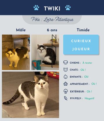 Je m’appelle Twiki, je suis un jeune mâle castré de 6 ans.