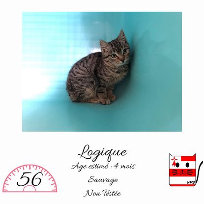 Logique est une femelle de 4 mois sauvageonne (un comportement normal en fourrière) qui vous attend dans une fourrière du 56. ATTENTION SORTIE AU PLUS TARD LE 18/03/2022 (avant euthanasie) !