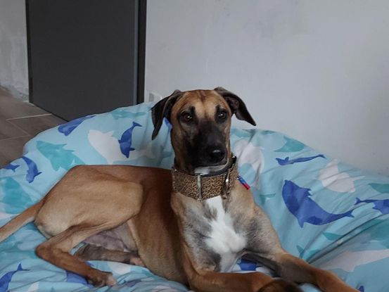 Race : Scandinave Hound (issu d’un croisement de Sloughi et Braque Allemand) Poids 24 KG. IDE, vaccin, castration, déparasitage interne/externe a jour.