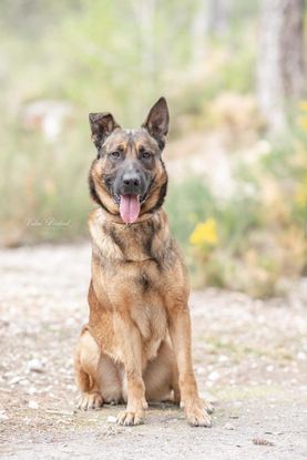 C’est un magnifique croisé malinois de 2 ans seulement. Il est adorable avec les humains, et même très sociable.