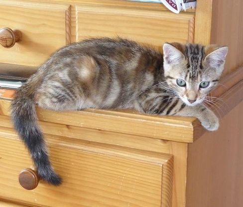 Cette jolie chatonne de 2 mois a une robe torbie, c’est-à-dire écaille de tortue (noir et roux) et tabby (tigré). Elle est magnifique et très originale. Elle a été trouvée un matin devant la maison d’une personne âgée qui ne peut pas la garder. Comment est-elle arrivée là ? Sûrement un abandon… un de plus ! Incompréhensible et inadmissible. Non seulement elle est belle, mais c’est aussi un amour de chatonne. Née vers le 15 juin, elle est en pleine forme, joueuse, très câline et sociable, elle s’est très vite adaptée aux autres chatons et au chien de sa Famille d’Accueil. Elle attend un foyer aimant pour la vie entière. Un don est demandé pour chaque adoption.