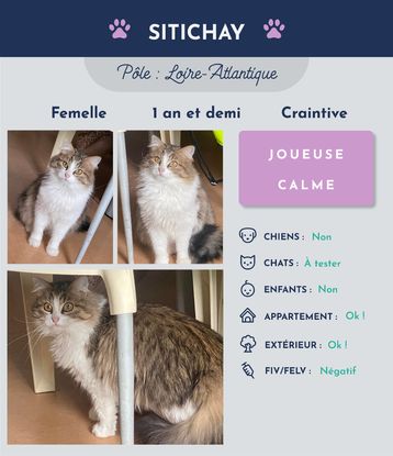 Chalut ! Moi c’est Sitichay, je suis une jolie femelle de 1 an et demi.