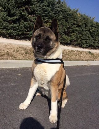 C’est une Akita Américain âgée de 3 ans. Elle pèse environ 50kg. Nanseï est OK mâles, OK femelles cool mais ne s’entend pas avec les petits chiens.