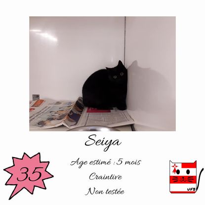 Seiya est une femelle de 5 mois craintive (un comportement normal en fourrière) qui vous attend dans une fourrière du 35. ATTENTION SORTIE AU PLUS TARD LE 01/04/2022 (avant euthanasie) !