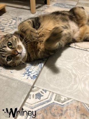 WITHNEY est une gentille louloute qui est timide au début mais après un temps d'adaptation, elle se montre très câline et proche de l'humain.