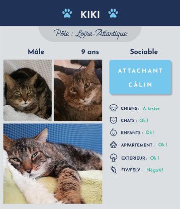 Moi c'est Kiki mais on m'appelle Papichat, allez savoir pourquoi... Bon OK j'ai presque 9 ans, je suis ronchon, je fais de de l'arthrose et un début d'insuffisance rénale… mais je suis encore jeune !