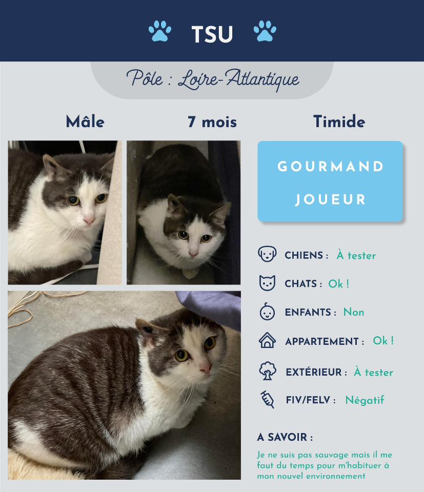 Je m'entends super bien avec le chat de la maison, j'aime jouer avec et faire de gros câlins ! Je ne suis pas sauvage mais il me faut du temps pour m'habituer à mon nouvel environnement.