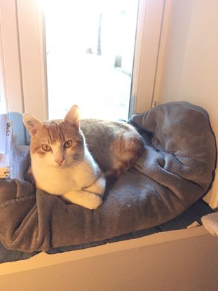 Beau minou roux d'environ 7 mois, au pelage clair et blanc.
