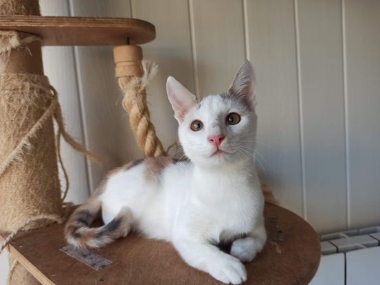 Siki est une jolie chatonne tricolore née le 25/10/2021 qui vient de Mayotte ! Elle nous a été confiée par une association qui œuvre sur place. En effet, Siki est née avec une malformation des pattes avant. Cela ne l'empêche pas de vivre pratiquement normalement, néanmoins elle aura besoin de légers aménagements, elle ne devra notamment pas pouvoir grimper trop haut pour ne pas avoir à se réceptionner sur ses pattes avant pour descendre. Bien sûr, les sorties en extérieur sont totalement proscrites ou uniquement en enclos extérieur totalement sécurisé pour sa sécurité. Siki est très sociable et câline, elle aime les autres chats mais pas du tout les chiens, elle devra être placée obligatoirement avec au moins un autre chat sociable.