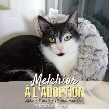 MELCHIOR est un jeune chat qui errait dans un lotissement et qui a décidé de se réfugier dans le garage chez une famille qui avait déjà deux chats. Malheureusement, l'un de ces deux chats supportait très mal sa présence et ne rentrait plus chez lui. Les humains qui avaient commencé à prendre soin de lui ont donc décidé à contre cœur de le confier à notre association pour qu'il puisse trouver un nouveau foyer. Ils ont tout fait pour l'accompagner au mieux et lui permettre d'avoir un beau futur.