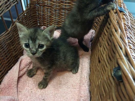 Clio et Thalia ont été retrouvées dans une poubelle agées d'à peine 1 semaine. Elles ont bien grandi et se sont socialisées en famille d'accueil. Elles auront bientôt 2 mois (nées vers le 10/07/18) et peuvent être adoptées ensemble ou séparément. Adoptions suivies par association chats là là de Valréas