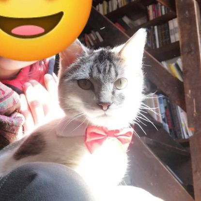 En même temps il faut dire que la minette peut être reconnaissante; sans sa FA elle ne serait probablement plus là aujourd'hui. Ficelle a en effet été trouvée complètement dénutrie et déshydratée sur une route.. ? La FA, ne pouvant laisser un chat en un tel état, l'a receuillie en urgence et lui a donné de la pâtée ce qui, selon le veto, l'a sauvée...et l'a rendue très gourmande ! ?